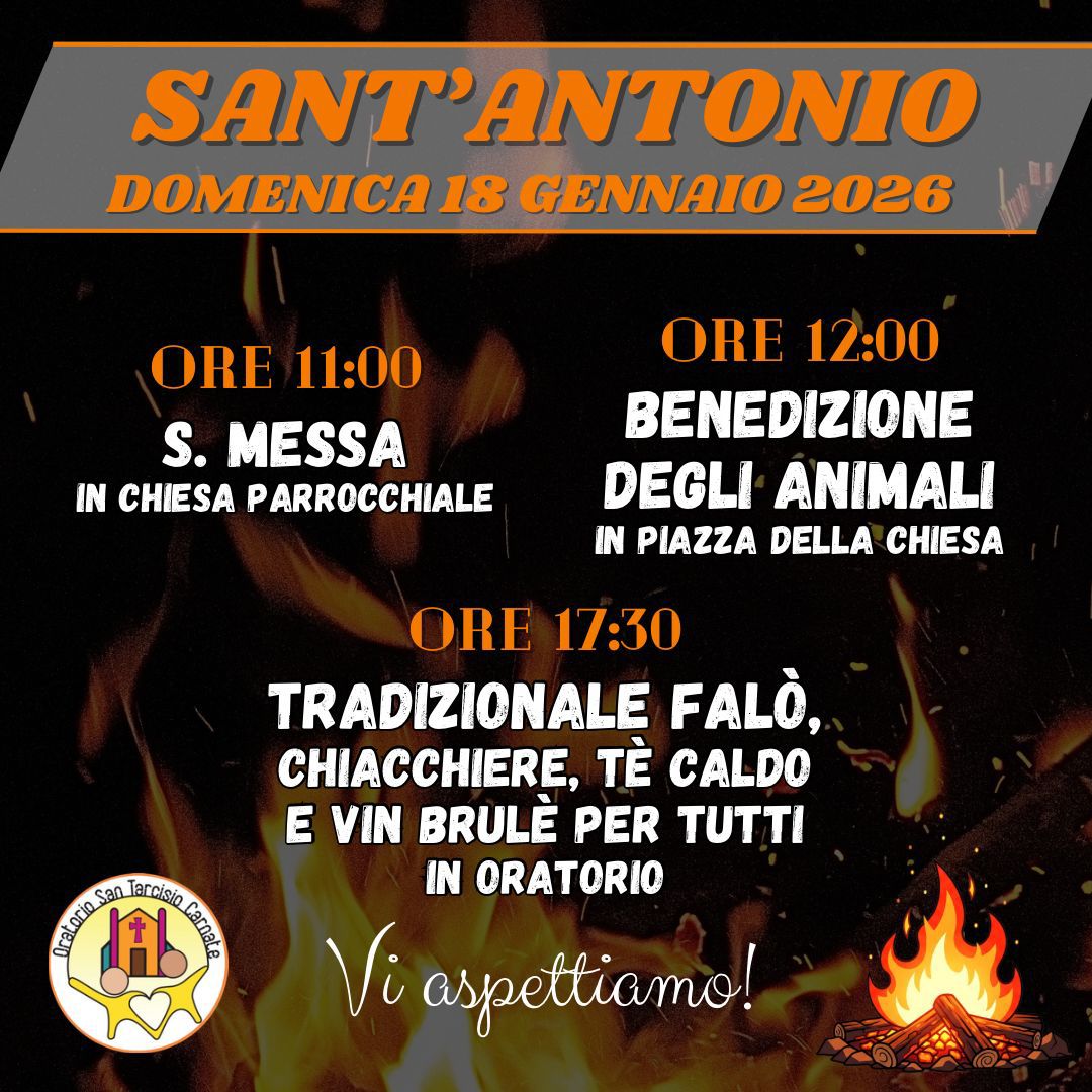 Domenica 18 Gennaio 2026 si svolgerà la Festa di Sant'Antonio, di seguito il programma: