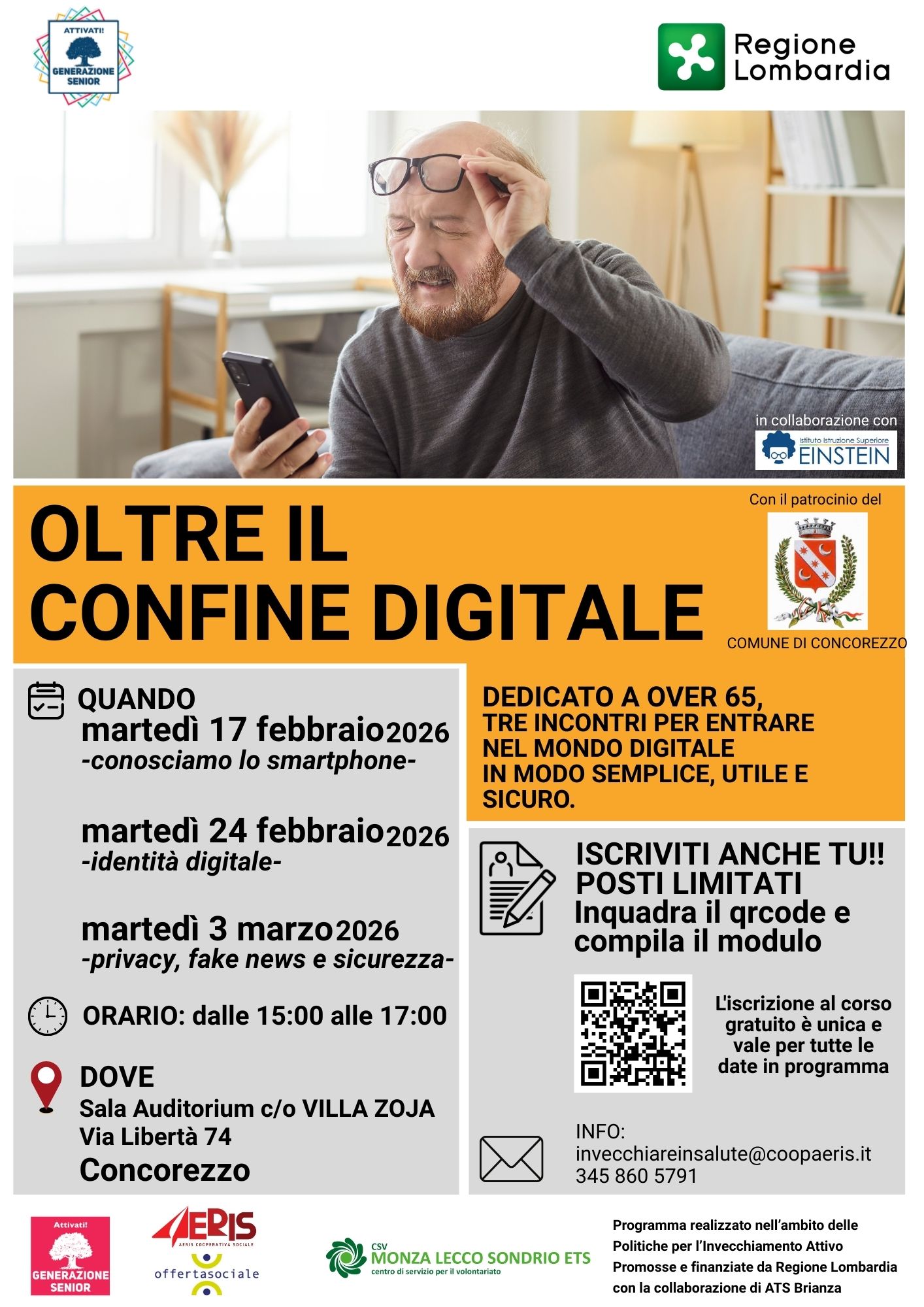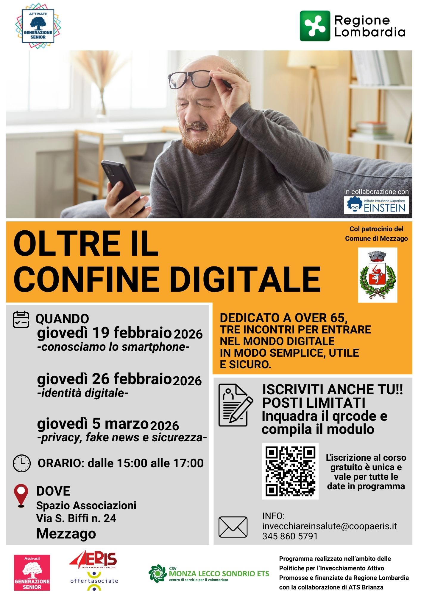 Nei mesi di Febbraio e Marzo a Mezzago e Concorezzo si terranno tre incontri dedicati agli over 65 per entrare nel mondo del digitale in modo semplice, utile e sicuro. L'iscrizione al corso gratuito è unica e vale per tutte le date in programma.