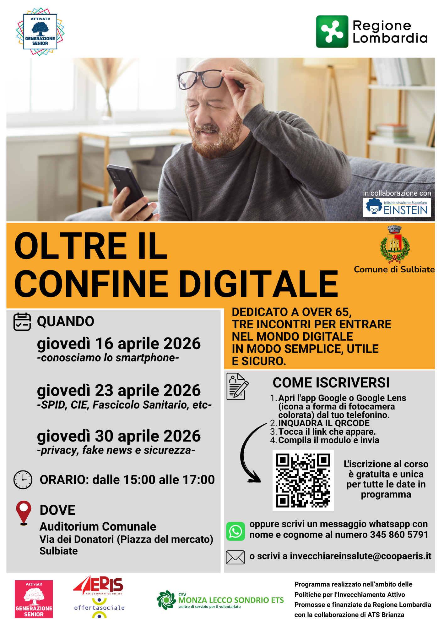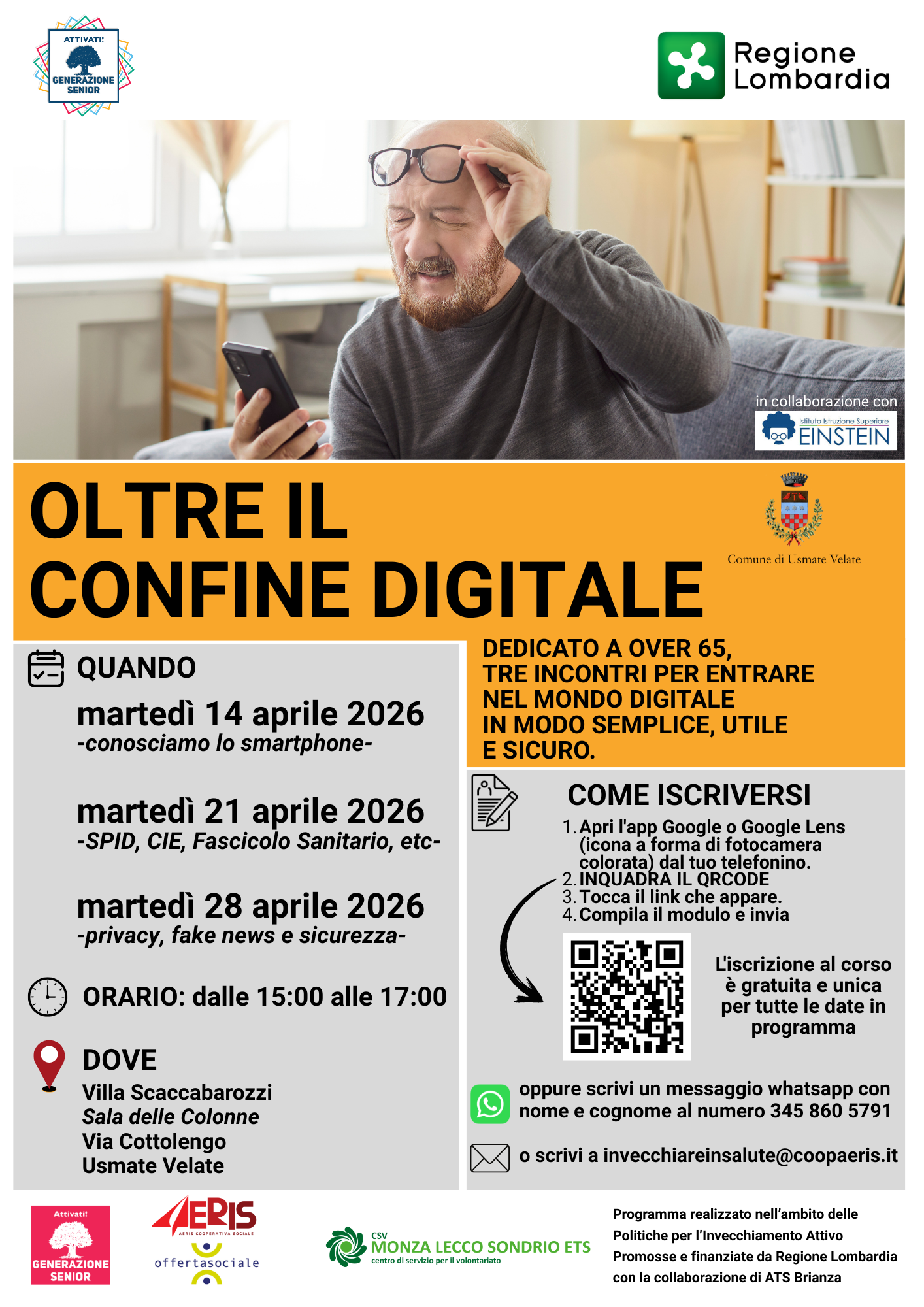 Nel mese di Aprile a Usmate Velate e Sulbiate si terranno tre incontri dedicati agli over 65 per entrare nel mondo del digitale in modo semplice, utile e sicuro. L'iscrizione al corso gratuito è unica e vale per tutte le date in programma.